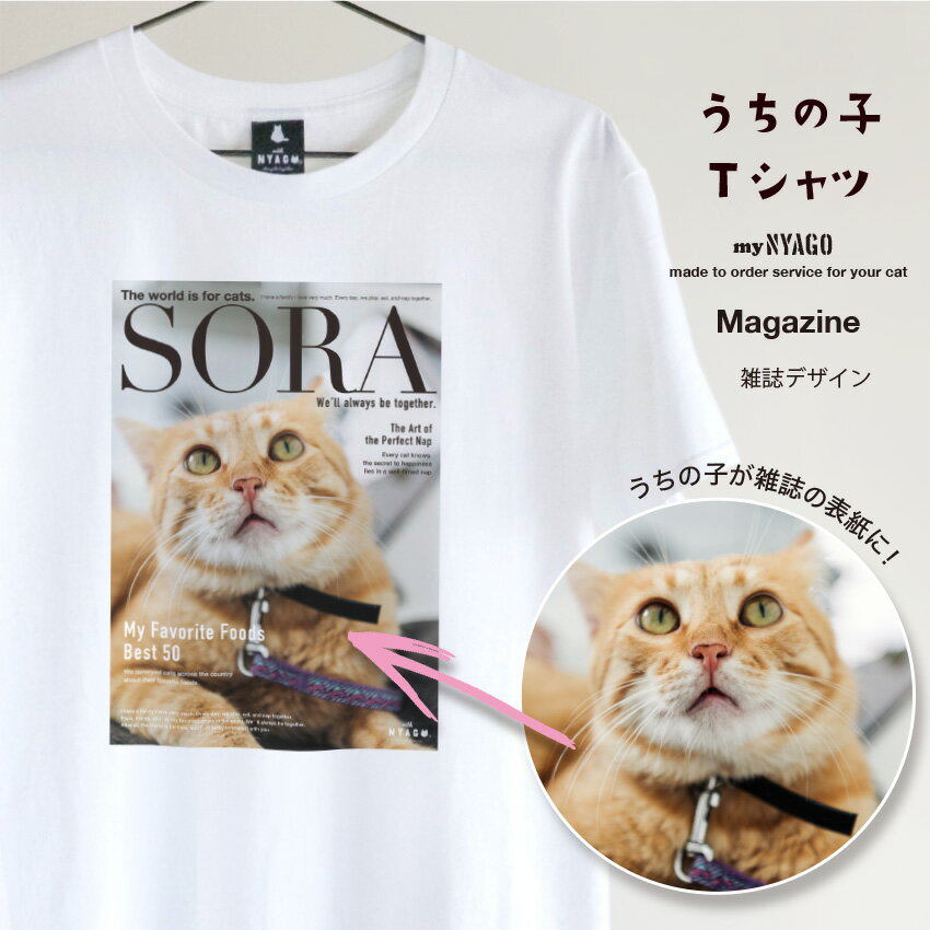 with NYAGO うちの子 猫 Tシャツ 【マガジン 雑誌 Tシャツ】ペット オリジナル オーダーメイド 愛猫アート Tシャツ 名入れ 写真 猫 tシャツ メンズ 半袖 猫柄tシャツ ねこ ギフト プレゼント 誕生日 にゃんこ ペット 猫自慢 インテリア ギフト メモリアル 記念日
