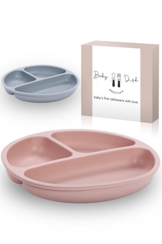【雑誌掲載 保育士監修】 ひっくり返らない 食洗器対応 吸盤付き 離乳食 食器 皿 出産祝い (くすみピンク)