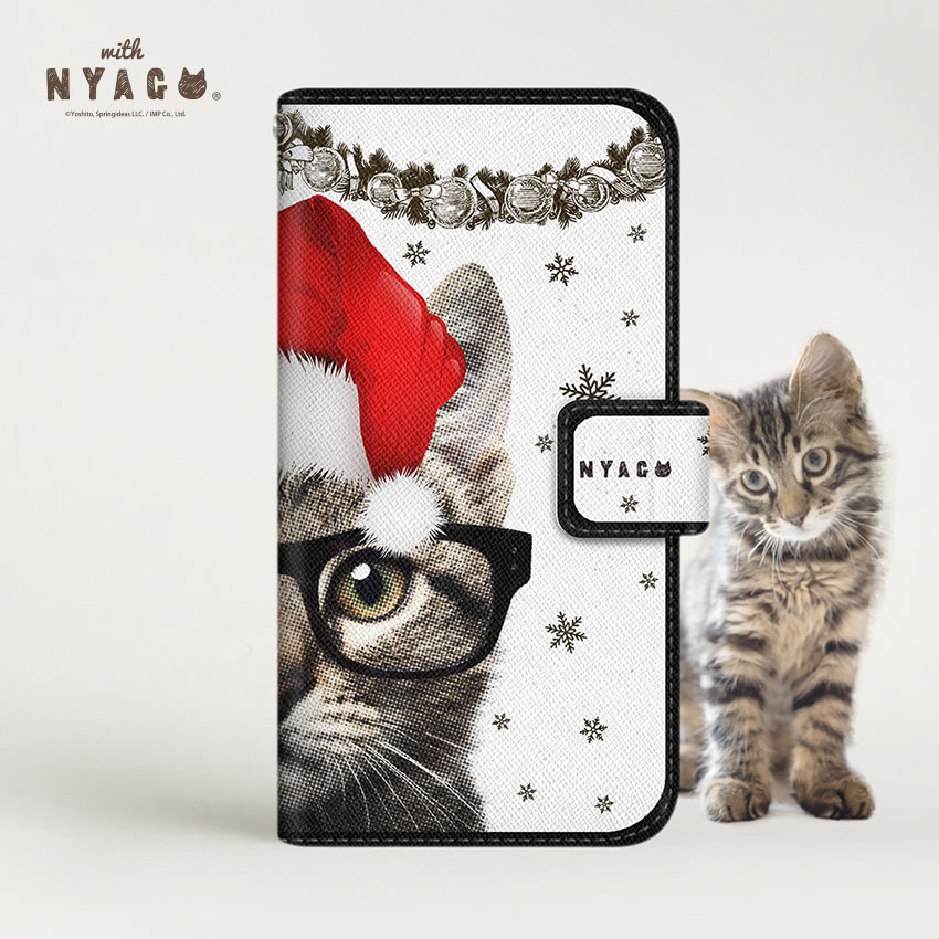 スマホケース 猫 手帳型 全機種対応 薄手【 キュート メガネ キャット 】【with NYAGO】 サンタクロース かわいいスマホケース 猫 柄 iPhone14 iPhoneケース 猫 可愛い スマホショルダー 猫 ネコ柄 動物