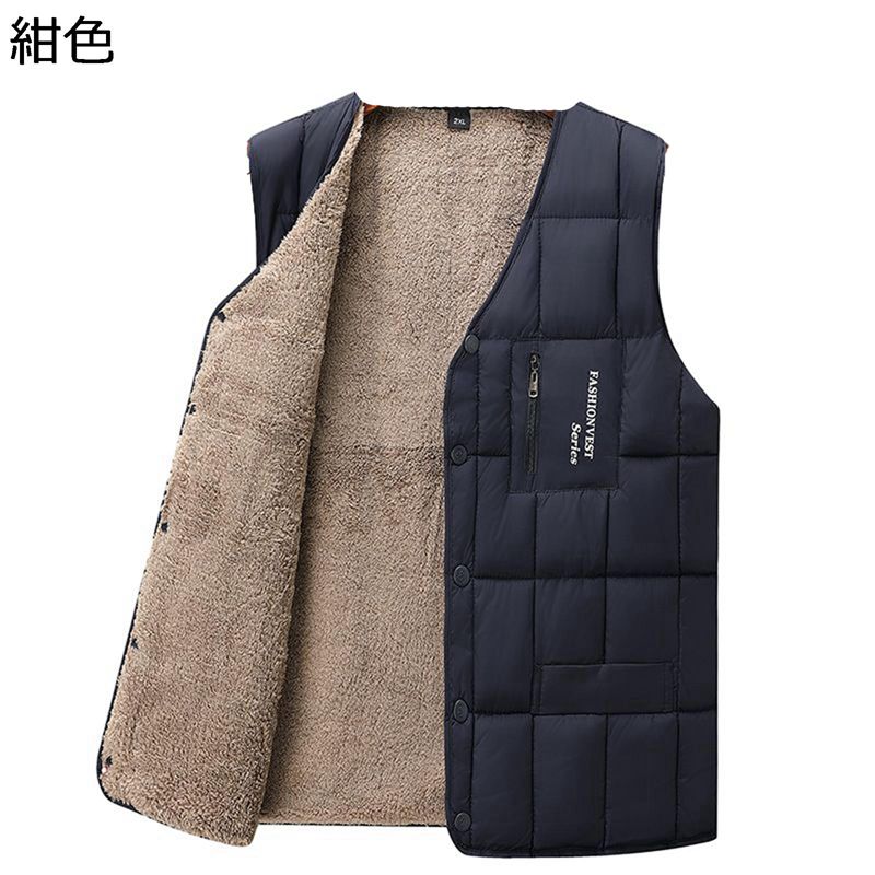 メンズ ボアベスト 裏起毛 Vネック インナー ウィンターベスト 袖なし 無袖 中綿 保暖保温 雪対策 厚い 柔らかい コート アウトドア コート 上着 日常着用 普段用 シンプル 秋服 冬服