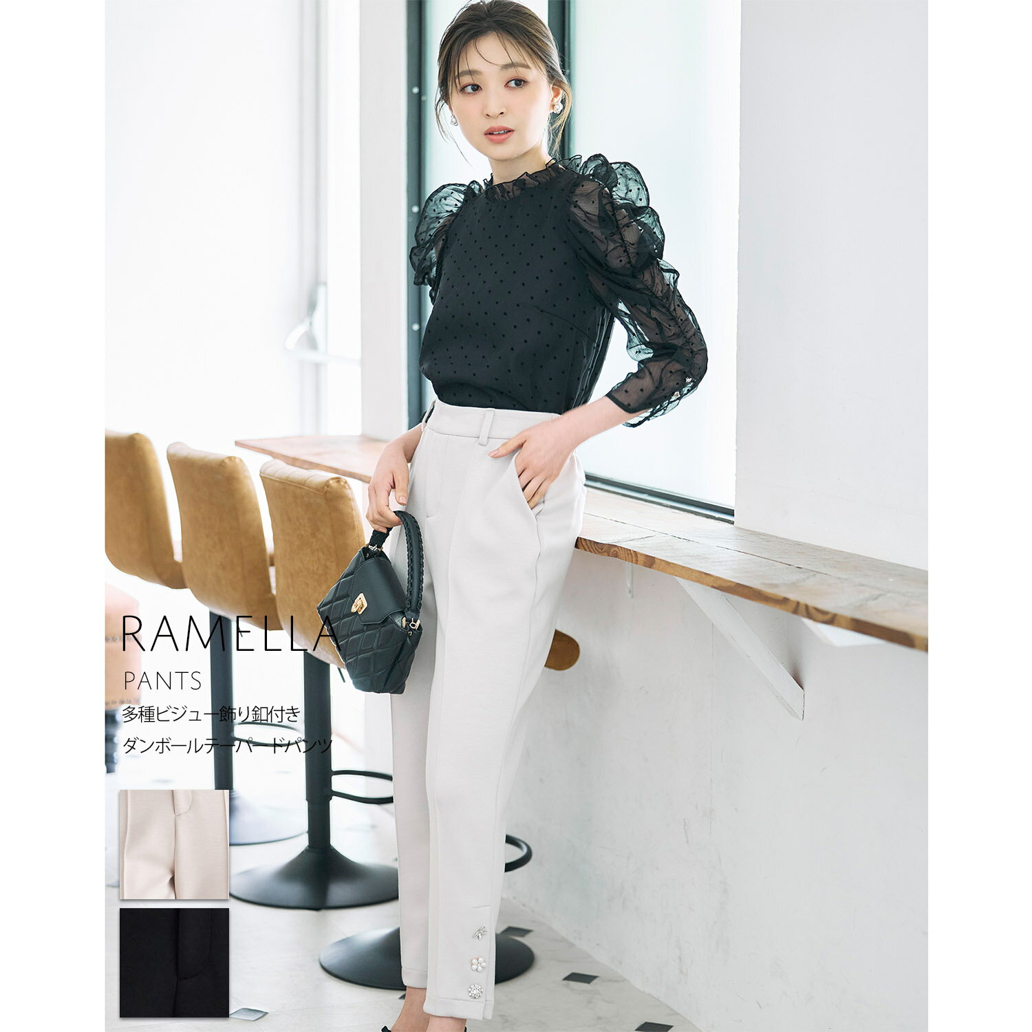 多種ビジュー飾り釦付きダンボールテーパードパンツ【ramella ラメーラ】tocco closet(トッコクローゼット) ※上西星来さんはパールベージュ着用 パールベージュ ブラック 商品番号:186-200375