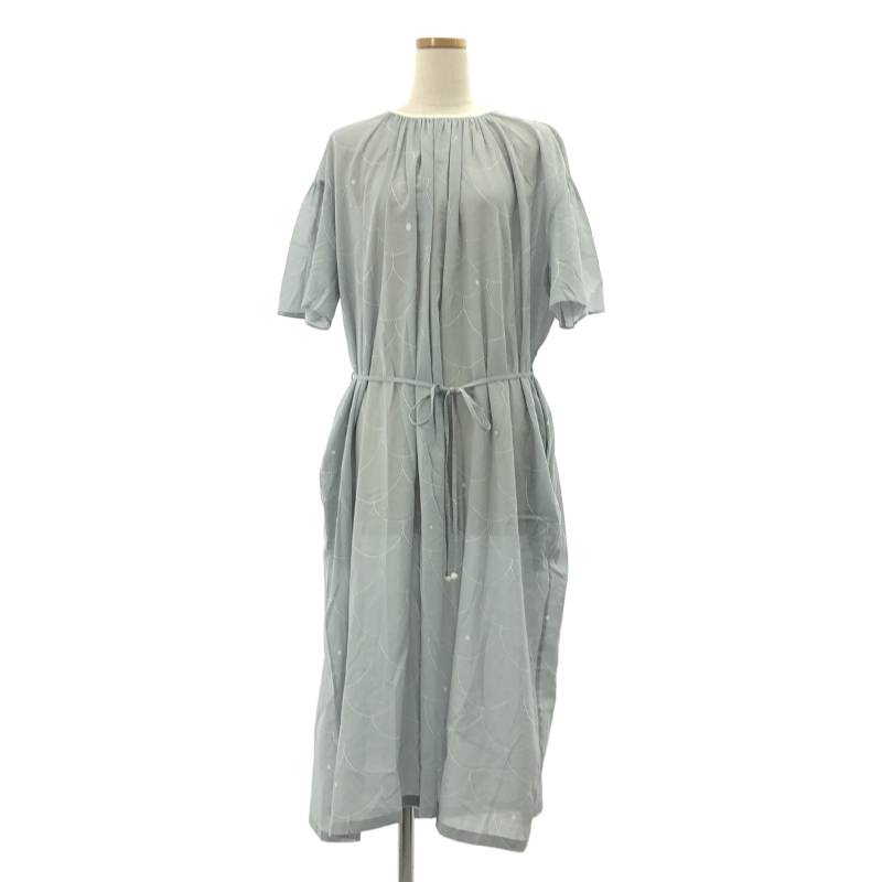 【中古】良品 mina perhonen ミナペルホネン forest parade Vネック レース ベルテッドコート ワンピース 38 グレー レディース Luxs ブランド古着のリュクス