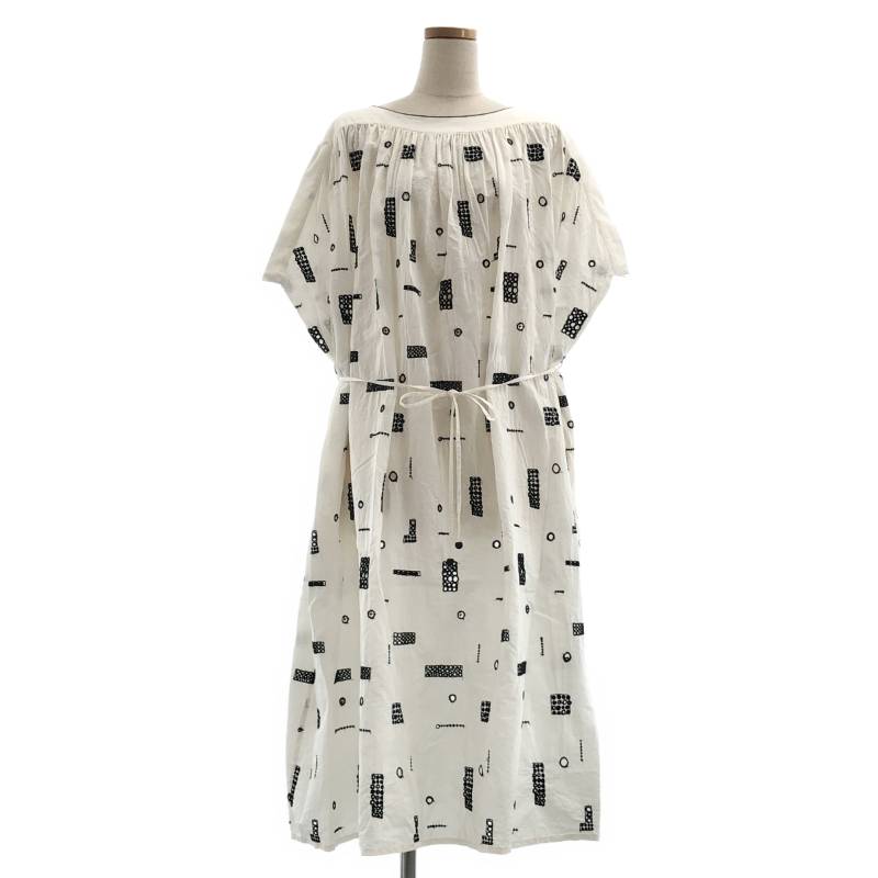 mina perhonen / ミナペルホネン | 2019 s/s | piece dress コットン シルク エンブロイダリー ワンピース | 38 | ホワイト/ブラック | レディース