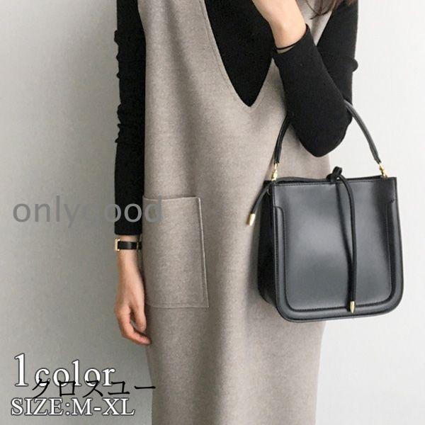 ニット ベスト 重ね着 ワンピース Vネック 体型カバー 長袖 ニットベスト ジャンバースカート キレカジ ポケット ミディアム丈 膝丈 秋冬 大きいサイズ メンズ レディース カジュアル