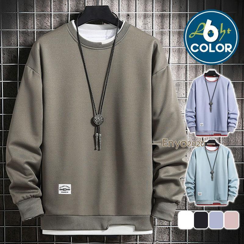 トレーナー スウェット トップス プルオーバー スポーツ 長袖 無地 ゆったり スウェット・トレーナー 重ね着風 薄手 オシャレ 秋服 かっこいい コーデ 大きいサイズ メンズ レディース カジュアル