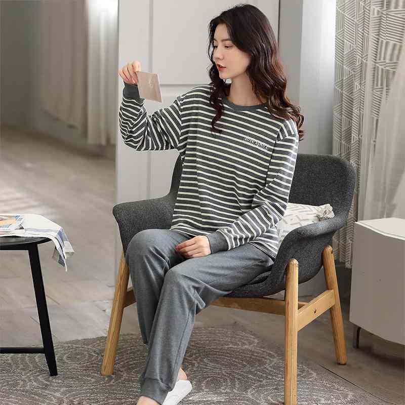 おしゃれ 伸びる 伸縮性 楽のび パジャマ セット スウェット 女性用 パジャマ 2025 春秋 綿の 長袖 コットン 秋 ストライプの ホーム 服 スーツは 外で 着用 できます