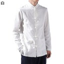 リネンシャツ 漢服 チャイナシャツ 太極拳服 メンズ 長袖 チャイナボタン 表演服 春 春秋 コンフォート 軽い ベーシック トップス 体型カバー 禅 寿披露宴 散歩 日常着用 カジュアル 着回し