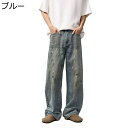 メンズ レディース デニムパンツ 長ズボン ジーンズパンツ ダメージジーンズ プリント リラックス ゆったり ファスナー付き ファッション オールシーズン 日常着用 お出掛け 旅行 街着 大きいサイズ