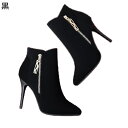 ショートブーツ 金属 メタリック スエード レディース ブーティー 短靴 ジップ 秋冬 ハイヒール ピンヒール セクシー ポインテッドトゥ 美脚 滑りにくい 仕事 通勤 柔らかい 日常着用 おしゃれ シンプル