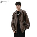 エコ革ジャン ジャケット メンズ ラライダースジャケット ショート 長袖 折り襟 ジッパー 秋コート カジュアル PUジャケット ルース スプリング 秋服 上質 軽量 防風 日常着用 着心地いい 男性 着回し