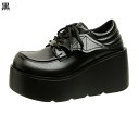 ゴスロリ 超厚底 パンプス 8CMヒール ロリータ レディース サブカル 地雷系 パンク レースアップ ゴスロリ靴 厚底靴 カジュアル 日常着用 ウェッジヒール ラウンドトゥ 大きいサイズ パーティー