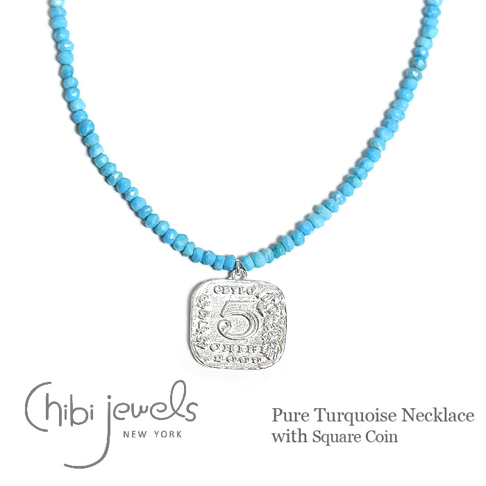 【再入荷】≪chibi jewels≫ チビジュエルズ スクエア 四角 ナンバー コインネックレス セイロンコイン 天然石 ターコイズ ネックレス (Silver) レディース ギフト ラッピング