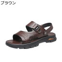 メンズ ビーチサンダル レザーサンダル 一足両用 本革 通気?速乾 ウォーキング ビジネス カジュアル ドライビングシューズ 着脱便利 歩きやすい?軽量 バックストラップ 四節着用 外履き お洒落 父