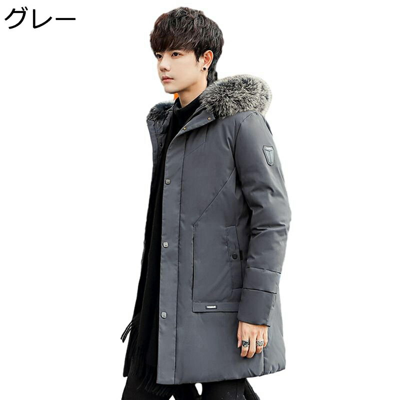 ダウンコート ダウンジャケット メンズ 冬服 ロングコート フード付き 韓国風 ファッション 防風性 防寒性 フィット 厚手 フルジップ 無地 腕章 カジュアル アウター トップス ベーシック 旅行 仕事 アウトドア 日常着用