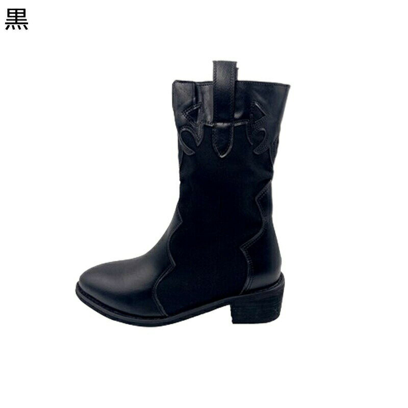ショートブーツ レディース ウェスタンブーツ 切り替え カジュアルブーツ 短靴 ジッパー 粗いかかと ミドルヒール アーモンドトゥ 秋ブーツ 冬ブーツ 美脚 滑り止め シンプル やわらか 日常着用
