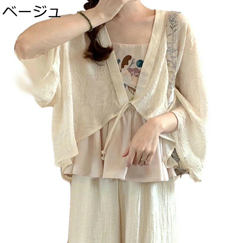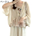 カーディガン シアー レディース ひも 七分袖 ボリューム袖 中華風 サマーアウター 重ね着 羽織もの 春夏 エレガント ファッション 着痩せ 透け感 爽やか 紫外線対策 日常着用 通勤 通学