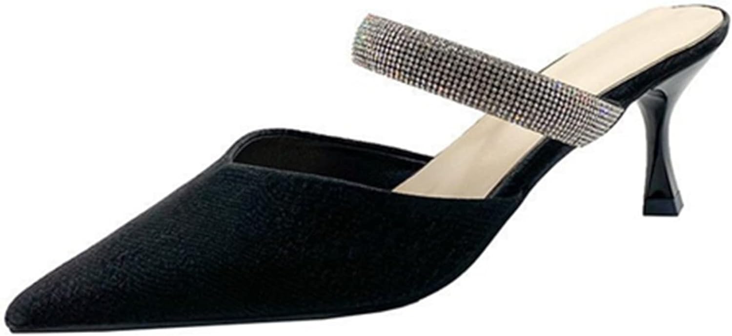 パンプス ミュール ラインストーン スパンコール サンダル つま先あり 春夏用 ハイヒール レディース ポインテッドトゥ 細ヒール 甲浅デザイン ファッション 日常着用 会社用 パーティー