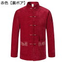 唐装 漢服 チャイナ服 伝統服 メンズ 長袖 裏起毛 厚手 刺繍柄 チャイナボタン ポケット付き トップス アウター チャイナ風 民族風 秋冬 ビジネス 宴会 日常着用 父の日 お祝い