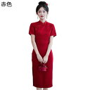 大きいサイズ チャイナドレス ワンピースドレス チャイナ服 エレガント ファッション ミディアム チャイナ風 無地 ヴィンテージ スリット チーパオ 春夏 宴会 お呼ばれ 結婚式 日常着用