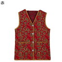 ベスト 花柄 花 Vネックカーディガン 防寒ベスト レディース チョッキ 中年 母へのギフト ママ 無袖コート 厚手 保温 快適 もっちり 防水性 女性用 日常着用 普段用 オシャレ シンプル 秋 冬