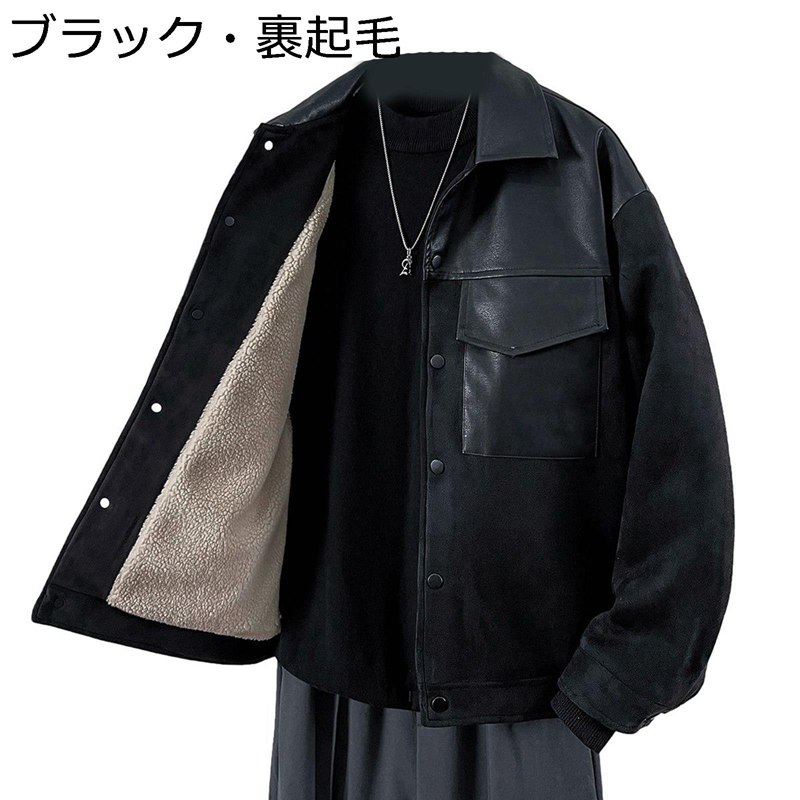 ライダースジャケット メンズ 裏起毛 PUレザージャケット ボアフリース 革ジャン フェイクレザージャンパー 秋冬着 ラペル 防寒防風 コンフォート 厚手&薄手 ゆったり お洒落 男性用 日常着用 普段着 m-3xl