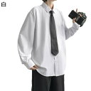 長袖シャツ メンズ カジュアルシャツ シャツジャケット カッターシャツ 春 夏 純色シャツ 襟付き オーバーサイズ おしゃれ ゆったり 速乾 通気 通勤 通学 散歩 日常着用 (ネクタイなし)