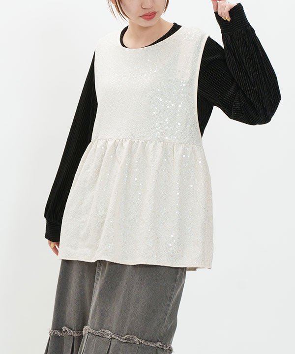 【期間限定P5倍】as know as キラピカさらっとPO レディース トップス カットソー 半袖 プルオーバー カットソー プルオーバー ノースリーブ PO 前後着用可能 ギャザー スパンコール きらきら 箔プリント キラピカ アノネネ