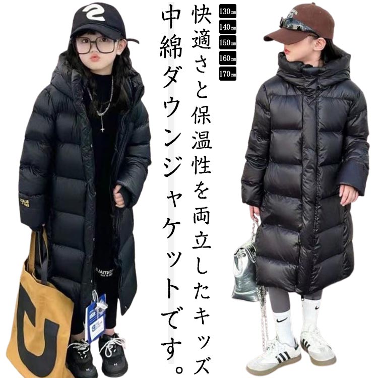 ベンチコート 中綿コート ダウンコート ロングコート ジャケット コート 防寒 暖かい 秋冬 冬 ジャケットホルダー 冬服 子供服 北海道 お出かけ アウター 黒 撥水 防風 ロング丈 雪遊び 保温 防寒対策 130 140 150 160 170