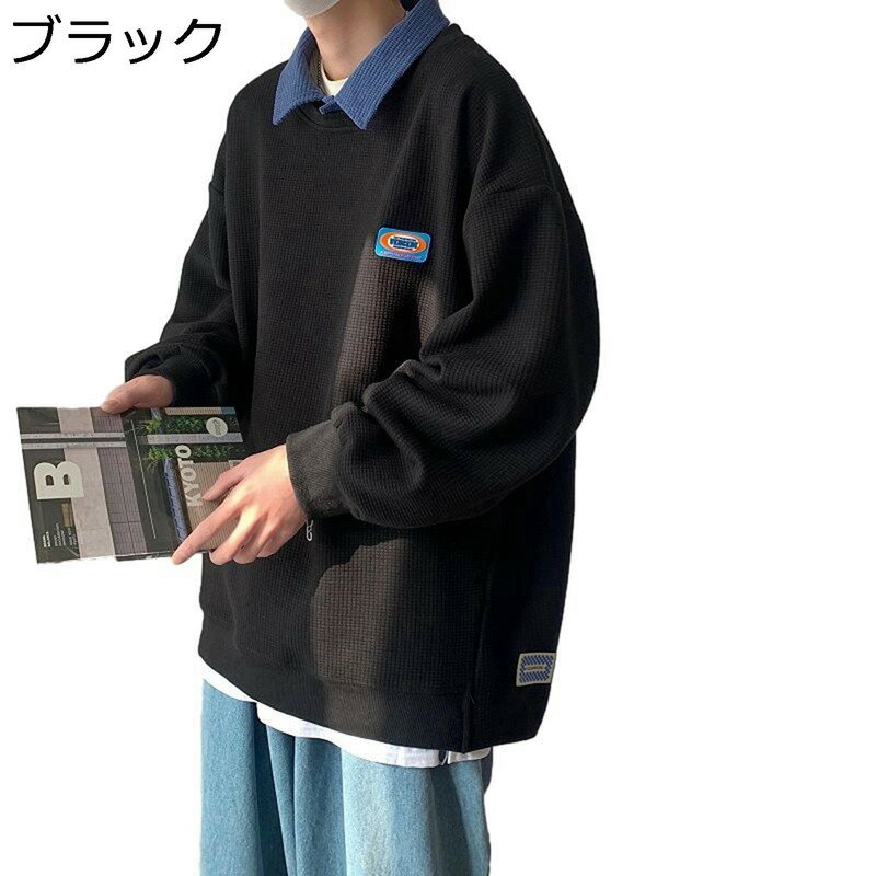 トレーナー レイヤード スウェットパーカー メンズ おおきいサイズ フルオーバー 重ね着風 ラペル トップス 春秋冬 韓国 簡約 デイリー 着心地良い サイクリング 普段着 旅行 キャンプ